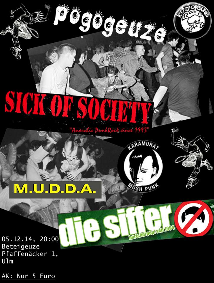 Ja, und zwar vom aller Feinsten. M.U.D.D.A. haben die Messlatte als Opener ziemlich hoch angesetzt. Da konnten Karamurat locker drunter durch rocken. Die Siffer bügelten alles wieder glatt und Sick of Society ham zum Schluß nochmals mit dem Hammer oben drauf gebatscht! Punk Rock, auf die Zwölf, süffige Melodien und Vollgas. So geil die Bands, so geil die Leute! Ham alle Einsatz gezeigt. Rundes Ding.